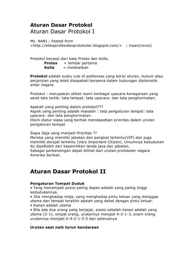 Mantan Menteri Kelautan dan Perikanan Susi Pudjiastuti. Pada posisi berjajar pada garis yang sama tempat terhormat adalah di tempat paling tengah dan di tempat sebelah kanan luar atau dengan rumus. Pengertian Aturan dan Contoh Kegiatan Keprotokolan Menurut Ahli - Dari segi bahasa protocol berasal dari bahasa latin protocollum yang terdiri atas kata yaitu protos dan kolla yang artinya lembar pertama dari dokumen resmi the first leaf of legal document Kata protokol mengandung pengertian.